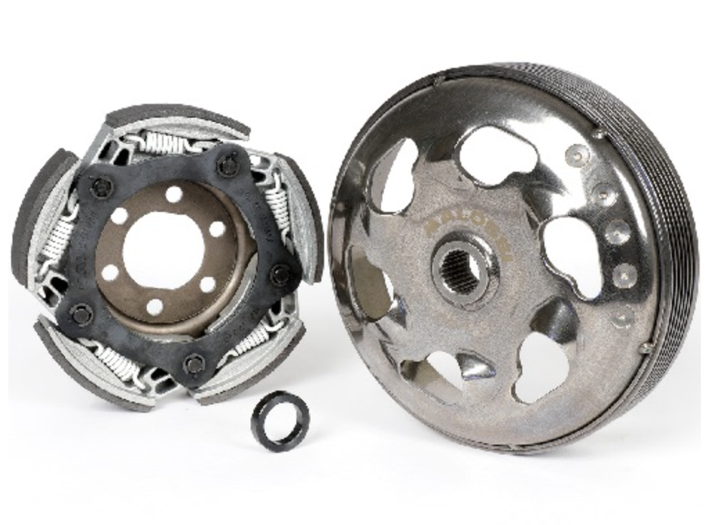De Malossi Fly Clutch is een versterkte centrifugaalkoppeling die is ontworpen om bestand te zijn tegen extreem gebruik en zware belasting.