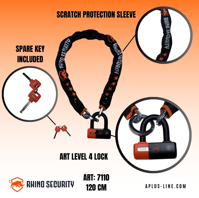 Het Rhino Loop ART4 kettingslot – Exclusive Line (120 cm) is ontwikkeld voor motorrijders en scooterrijders die geen concessies willen doen aan veiligheid. Dit kettingslot voldoet aan de ART4-norm, wat betekent dat het door vrijwel alle verzekeraars wordt geaccepteerd voor diefstalverzekering.