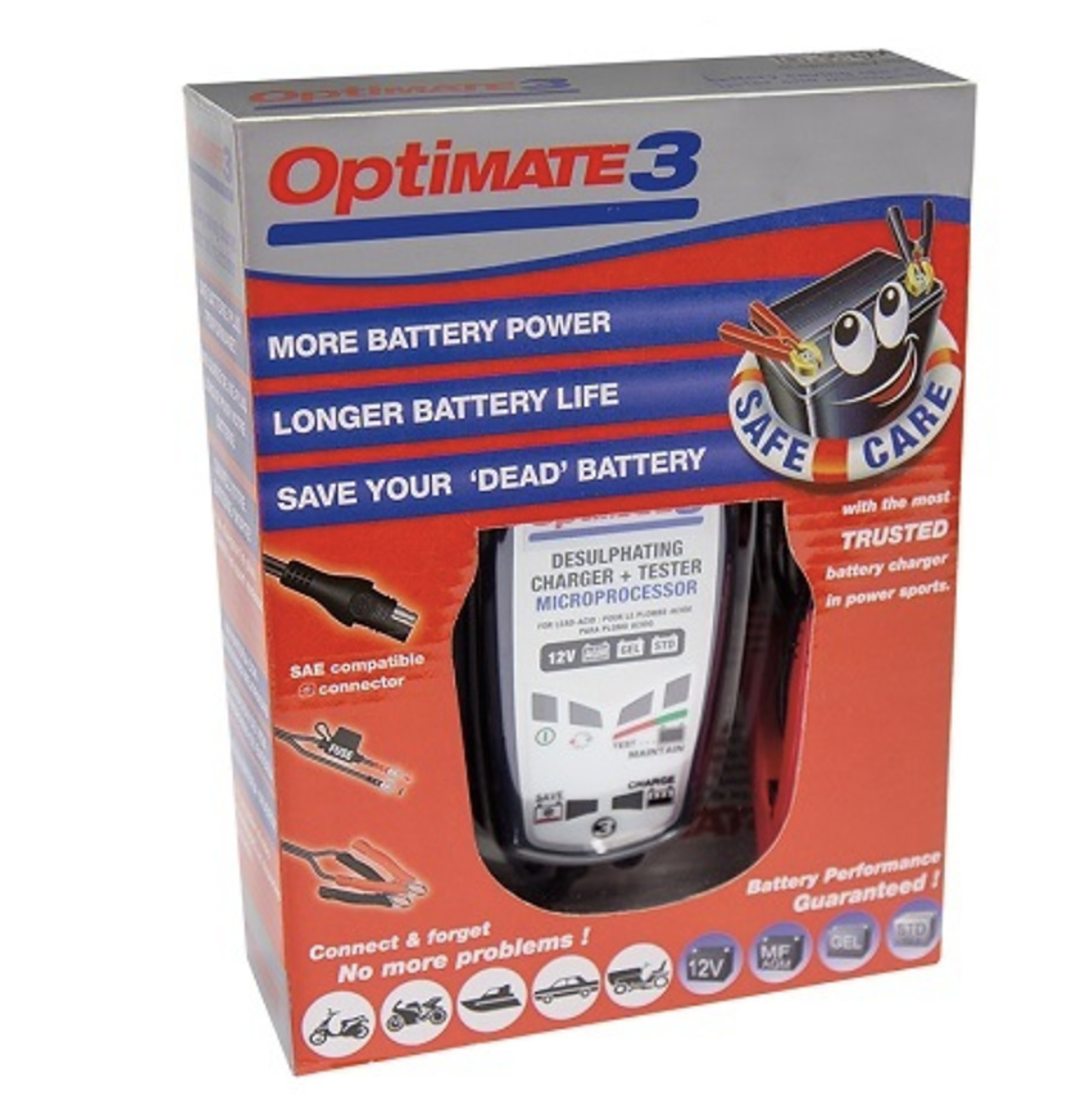 De OptiMate 3+ is een veelzijdige acculader, die accu’s kan doormeten, laden, onderhouden en herstellen.